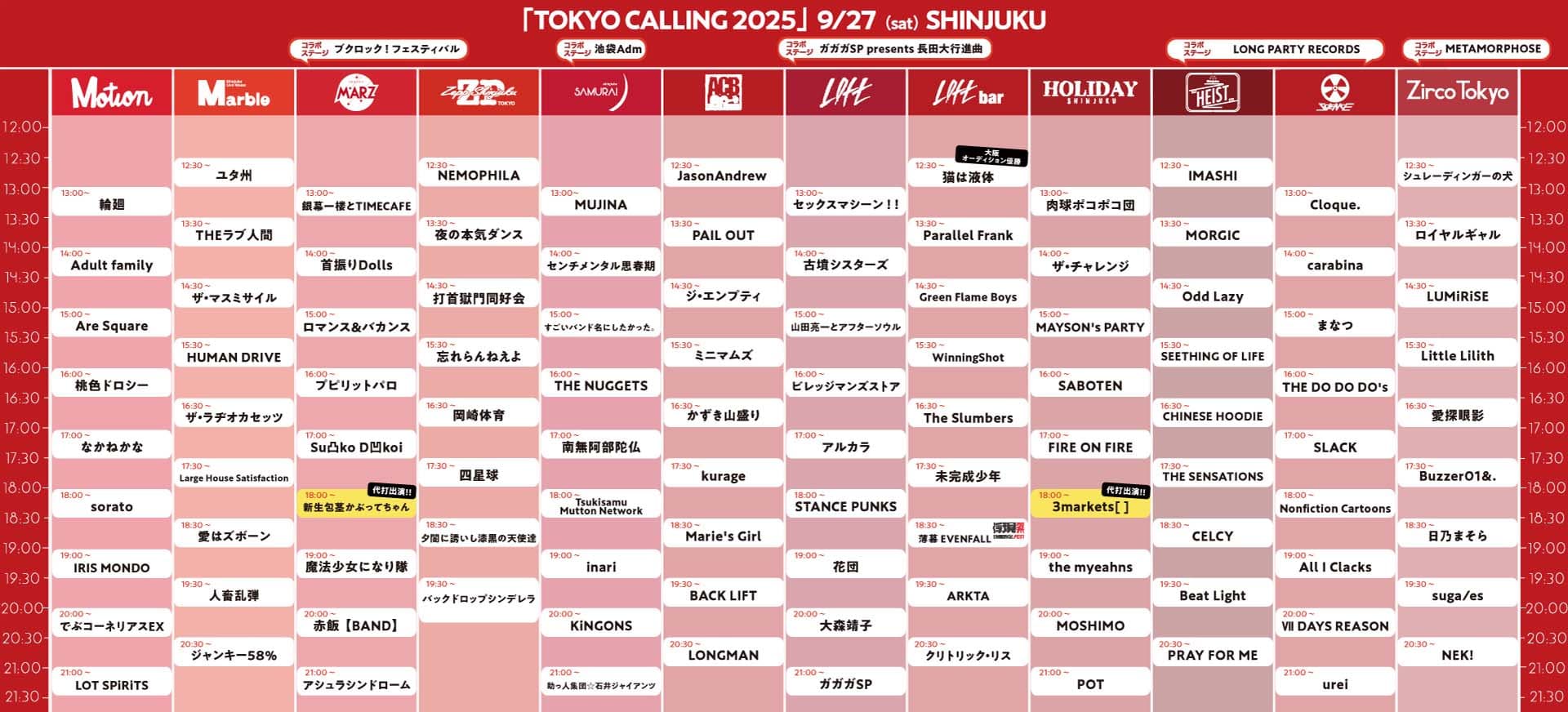 Zepp Shinjuku (TOKYO) / 新宿LOFT / 新宿LOFT bar / 新宿Marble / 新宿MARZ / 新宿SAMURAI / Zirco Tokyo / HOLIDAY SHINJUKU / club SCIENCE / 新宿 HEIST / 新宿 Motion / 新宿ACB HALL |